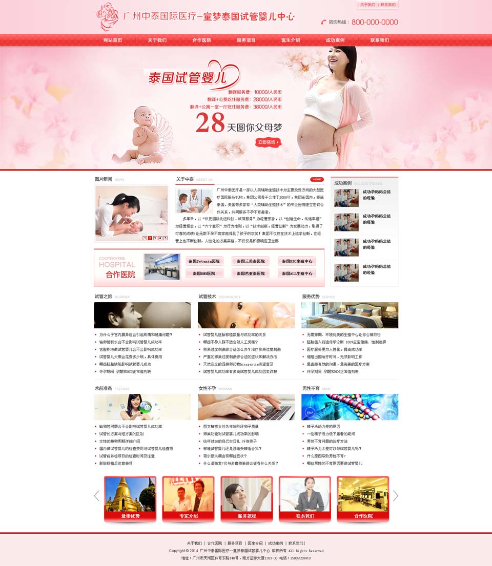 项目名称:广州中泰国际医疗童梦泰国试管婴儿中心 签定时间:2014-3-25 项目网址:http://www.ichinathai.com 项目简介: 泰国第三代试管婴儿技术,技术成熟,成功率仅次于美国,可达40%-60%。
