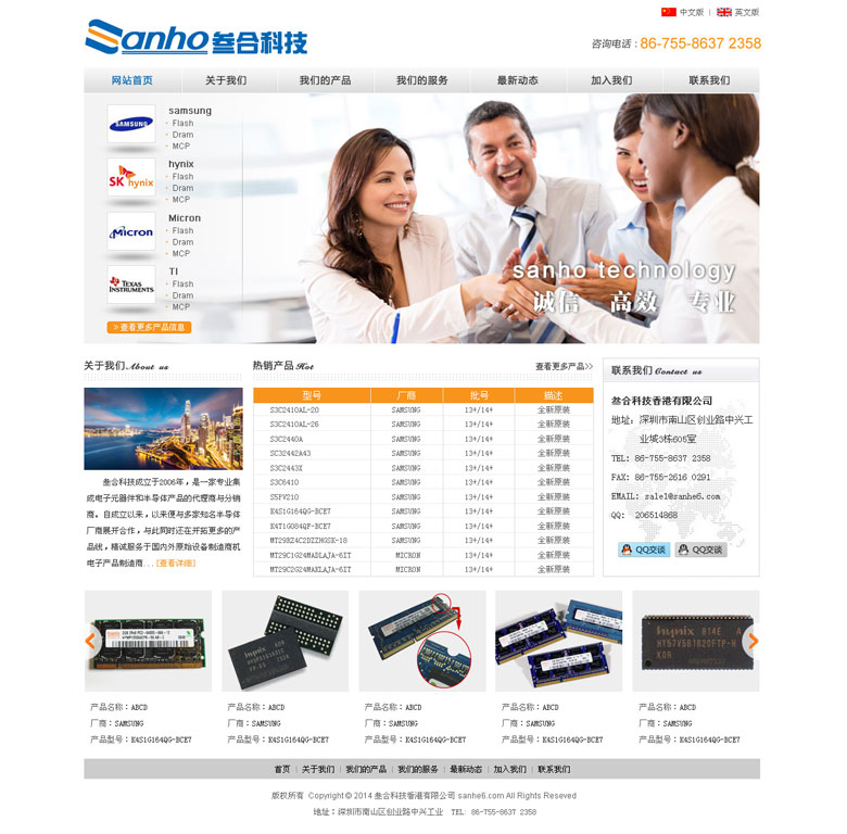 项目名称:叁合科技香港有限公司 签定时间:2014-11-19 项目网址:http://www.sanhe6.com 项目简介: 叁合科技成立于2006年,是一家专业集成电子元器件和半导体产品的代理商与分销商。自成立以来,以来便