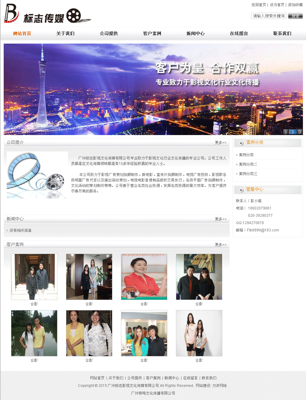 广州标志影视文化传媒有限公司致力于影视广告策划拍摄制作,微电影,宣传片拍摄制作,电视广告投放,影视歌各类明星广告代言以及演出活动策划,电视电影音像制品版权交易发行,各类平面广告拍摄制作,文化活动的策划制作等等。公司善于整合各类社会资源,发挥各类资源的最大效率。为客户提供尽善尽美的服务。