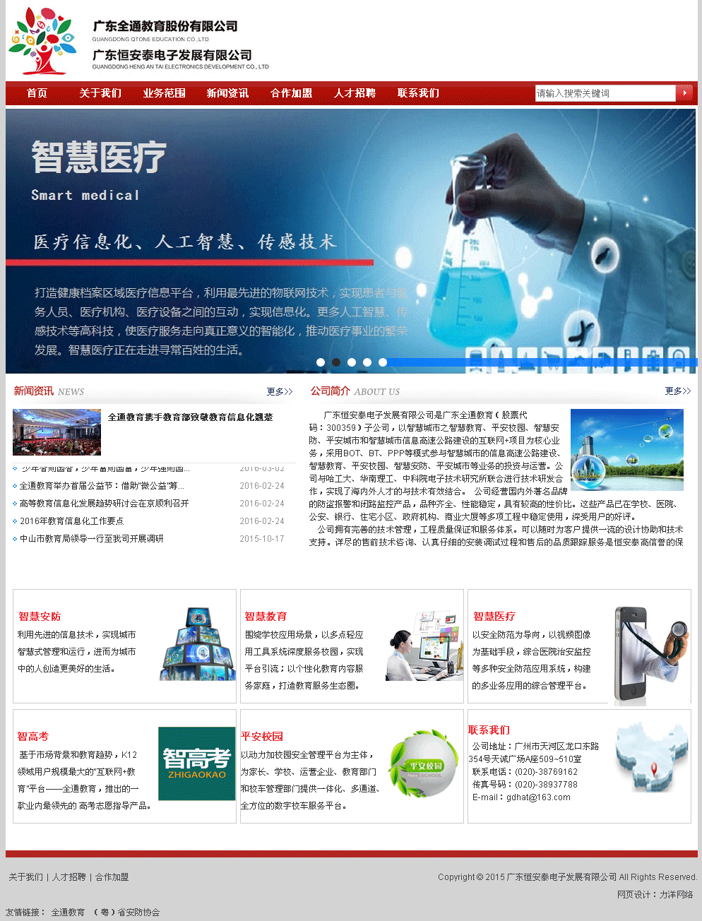广东恒安泰电子发展有限公司是广东全通教育(股票代码:300359)子公司,以智慧城市之智慧教育、平安校园、智慧安防、平安城市和智慧城市信息高速公路建设的互联网+项目为核心业务,采用BOT、BT、PPP等模式参与智慧城市的信息高速公路建设、智...