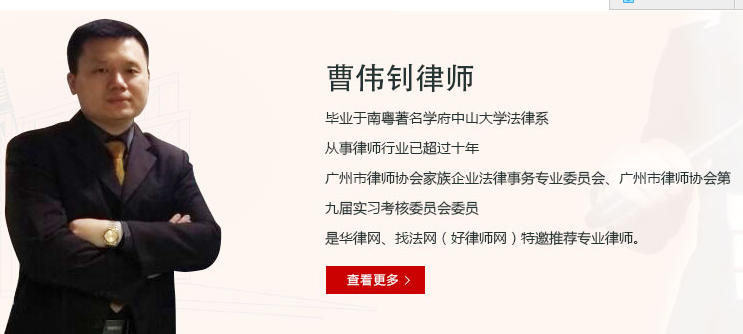 曹伟钊律师,广州籍,毕业于南粤著名学府中山大学法律系,从事律师行业已超过十年 ,现为中国民主促进会会员(民主党派),广州市律师协会家族企业法律事务专业委员会、广州市律师协会第九届实习考核委员会委员,是华律网、找法网(好律师网)特邀推荐专业律师。曹律师现于广东经国律师事务所执业,并专注于遗产继承方面的法律事务,包括遗产继承纠纷的法律诉讼、代书遗嘱及遗嘱见证、担任遗产管理人协助继承人继承遗产等。曹律师在合同法、公司法、劳动法、婚姻家庭法等民商事、经济、刑事方面也颇有建树,曾代理多起案件,受到当事人的一致肯定。