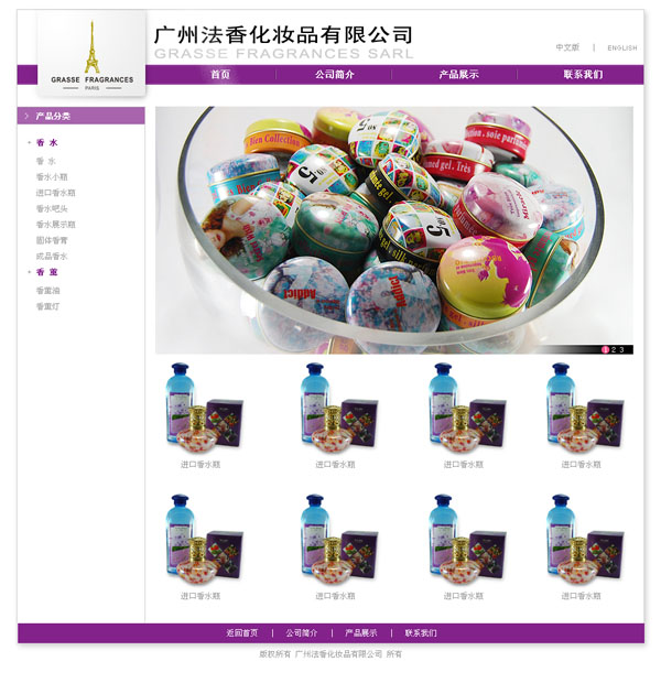 项目名称:广州法香化妆品有限公司网站建设签定日期:2009年10月9日广州法香化妆品有限公司是由位于法国“香精之都”格拉斯的GRASSEFRAGRANCES香精公司2004年在中国成立的分公司,集科研、生产、销售及OEM,ODM代加工贴牌生