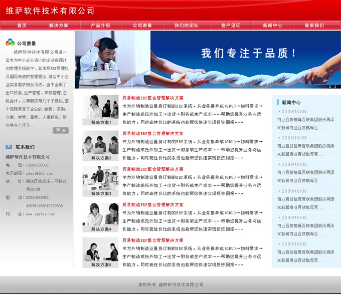 项目名称:广州维萨软件技术有限公司网站制作签定日期:2009年10月20日首页效果图: