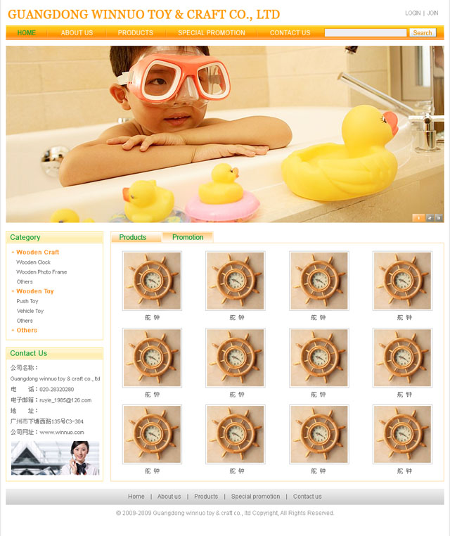 网站为英文外贸网,采用PHP + MYSQL 制作,栏目主要包括:Home About us Products Special Promotion Contact us。