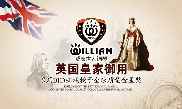 有近200年历史的英国威廉世家钢琴,在世界钢琴评鉴中,连获50面金牌奖,成为了全英国最大的钢琴销售工厂,目前全世界有100多个国家代理销售。