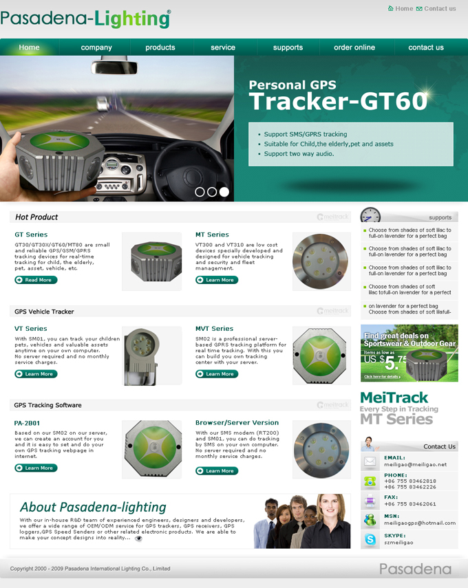 项目名称:帕萨迪纳国际照明有限公司网站建设签定日期:2010年3月17日网站首页设计效果: