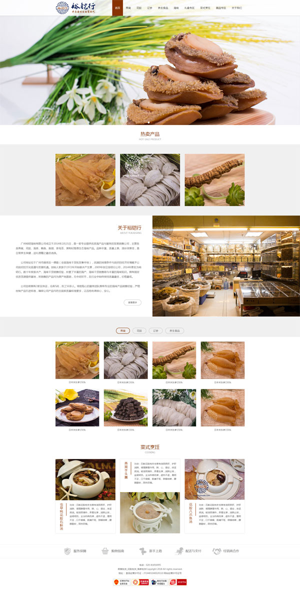项目名称:广州裕铠行海味有限公司网站开发 项目网址:www.haiwei8.com 公司简介: 广州裕铠海味有限公司成立于2014年2月21日,是一家专业提供优质海产品与服务的贸易销售公司,主营各类燕窝、花胶、海参、鲍鱼、鱼翅、家母茶