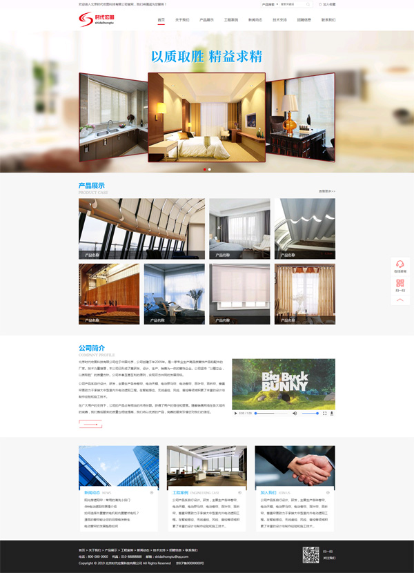 项目名称:北京时代宏图科技有限公司网站制作 项目网址:www.shidaihongtu.com 公司简介: 北京时代宏图科技有限公司位于中国北京,公司创建于年2009年。是一家专业生产高品质窗饰产品和配件的厂家。技术力量雄厚,本公司已