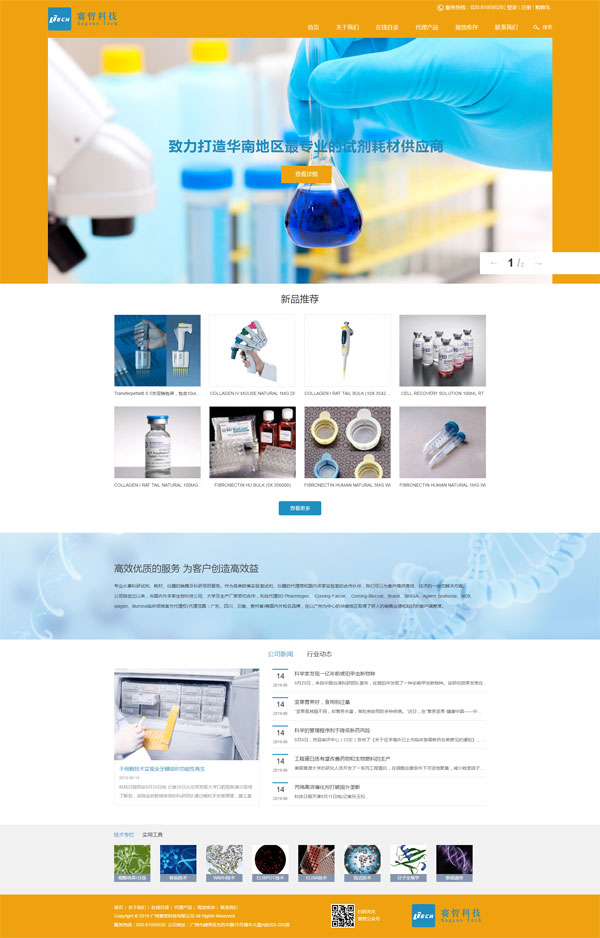 项目名称:广州赛哲科技有限公司网站商城制作 项目网址:www.sagenetech.com.cn 公司简介: 广州赛哲科技有限公司创立于2014年9月,历经短短几年的蓬勃发展。公司专业从事科研试剂、耗材、仪器的销售及科研项目服务。作