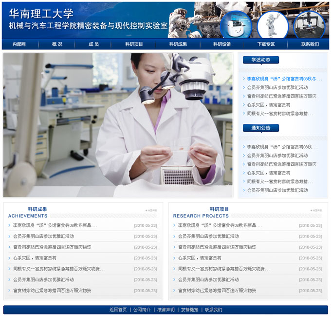 项目名称:华南理工大学机械与汽车学院精密装备与现代控制实验室网站建设