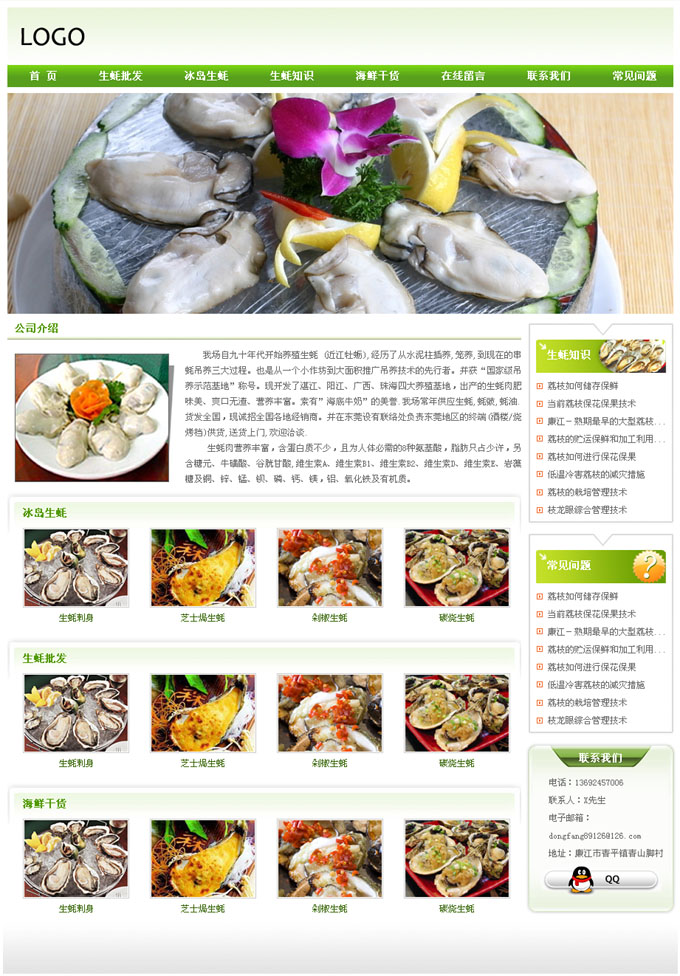 项目名称:生蚝批发网网站建设签定日期:2010年6月3日网站首页设计效果: