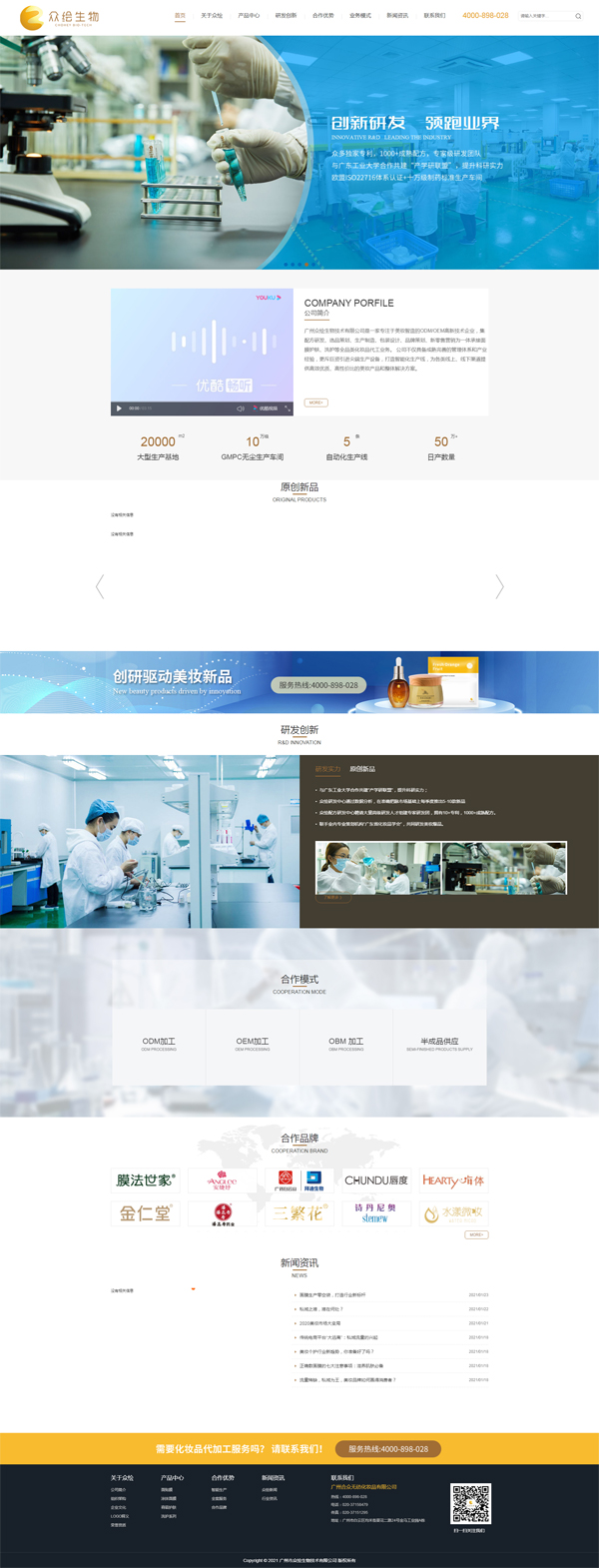 项目名称:广州合众无纺化妆品有限公司网站开发 项目网址:www.zhohui.com 公司简介: 广州众绘生物技术有限公司是一家专注于美妆智造的ODM/OEM高新技术企业,集配方研发、选品策划、生产制造、包装设计、品牌策划、新零售