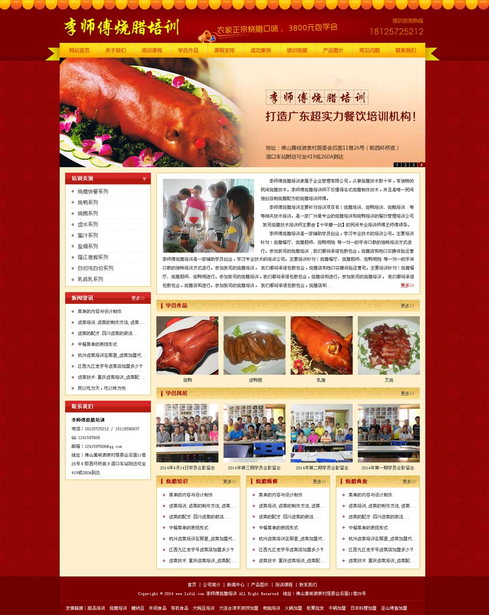 项目名称:李师傅烧腊培训官方网站 签定时间:2014-10-9 项目网址:http://www.lsfsl.com 项目简介: 李师傅烧腊培训,专业从事烧腊技术数十年,有独特的民间烧腊技术。李师傅烧腊培训师不仅懂得各式烧腊制