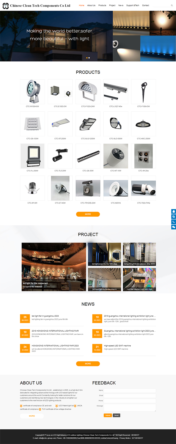 项目名称:LEDoutdoorlighting-ChineseCleanTechComponentsCoLtd.网站制作 项目网址:www.cctcc-group.com 公司简介: Establishedsince2008Chin