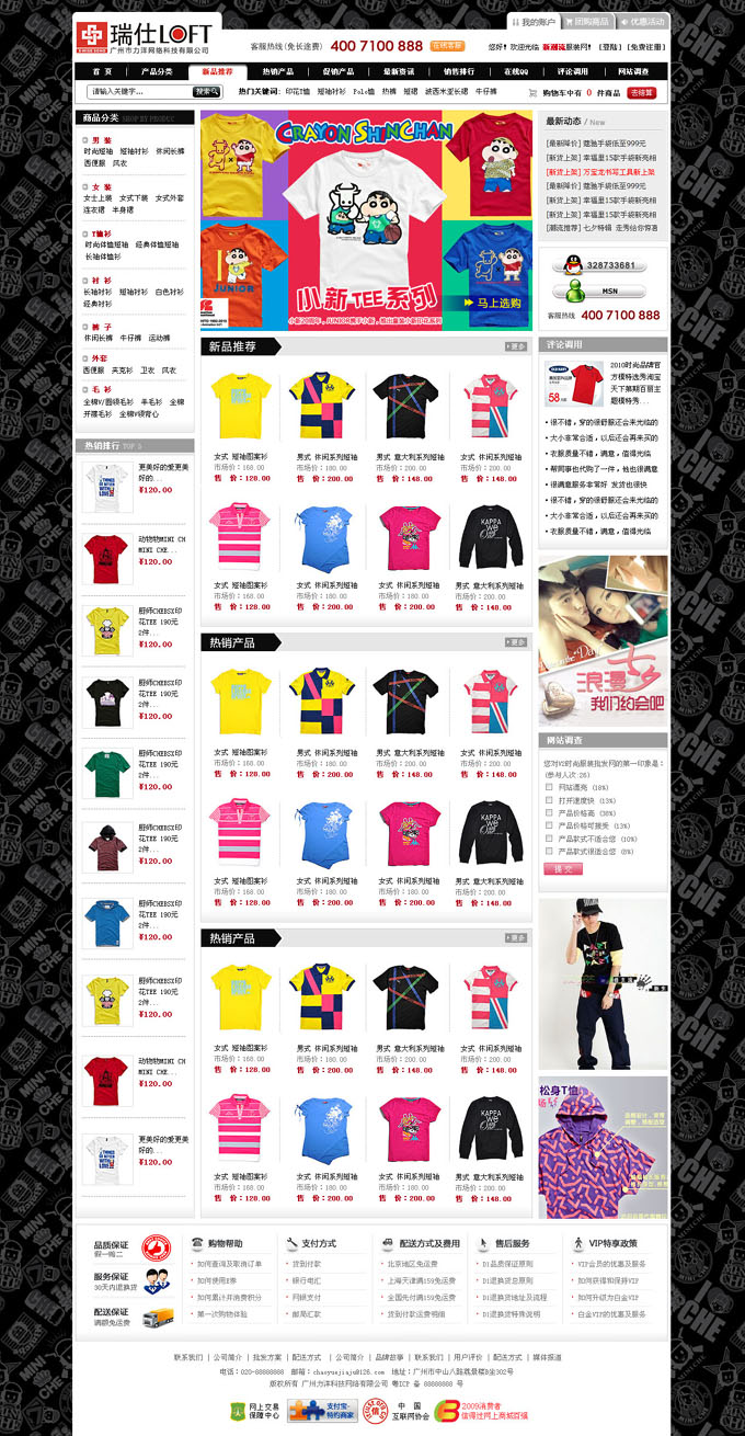 网站栏目包括:首页,产品分类,新品推荐,热销产品,促销产品,最新资讯,销售排行,在线QQ,评论调用,网站调查。