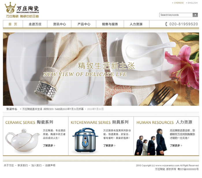 项目名称:广州万庄陶瓷网站建设签定日期:2010年8月12日广州万庄陶瓷酒店用品有限公司承传了东方陶瓷文化的精髓,吸收传统工艺,引进先进科技。独特的器皿营造独特的饮食天地,展示丰富多彩的生活品味。精美绝伦的餐具将美食以优雅的方式上桌,为各种