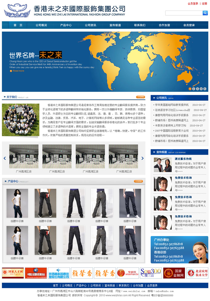 项目名称:香港未之来国际服饰集团公司网站建设