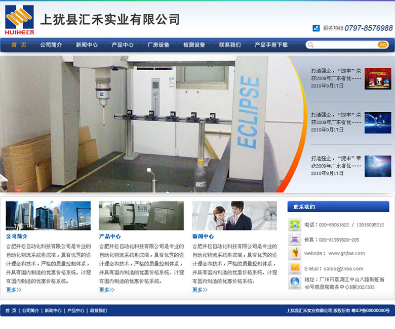 项目名称:江西上犹县汇禾实业有限公司网站建设签定日期:2011-2-13公司简介:上犹县汇禾实业有限公司原为中山市精瑞模具制品有限公司,是一家专业生产精密冷冲模架、独立导柱、导套、冲针、保持架、数控冲模具等冷冲模配件的企业。公司成立于199
