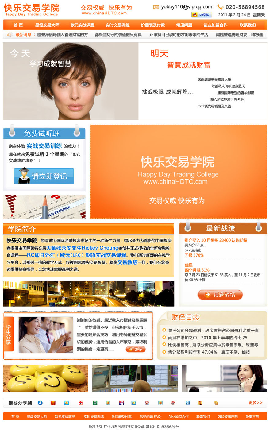 项目名称:快乐交易学院网站制作签定日期:2011年2月14日网站首页设计稿: