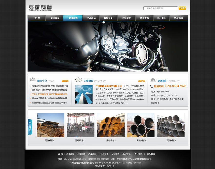 项目名称:广州强雄金属构件有限公司网站建设签定日期:2011年9月28日公司网址:http://www.steelpiping.net公司简介:公司始成立于一九八三年,以钢管内外防腐为主。在经过多年的摸索发展后,在一九九三成立:“广州市白云