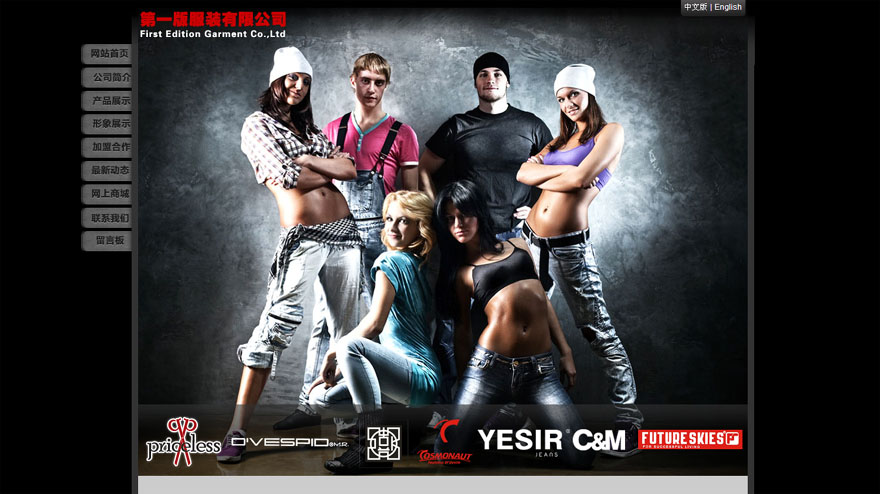 项目名称:广州第一版服装有限公司网站建设签定日期:2011年11月4日注册网址:http://www.feg-co.com公司简介:第一版服装有限公司,坐落在具有国际牛仔之都的新塘镇,是一家牛仔裤为主导、时尚服饰系列为配套,集设计、开发、生