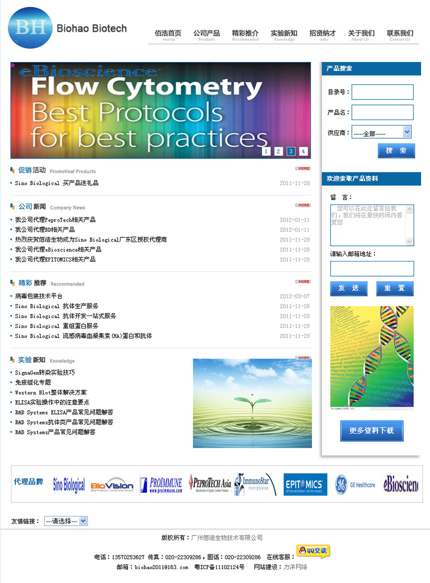 项目名称:广州佰浩生物技术有限公司网站建设签定日期:2011年11月24日网址:http://www.gzbiohao.com/广州佰浩生物技术有限公司是一家专业从事生物试剂研发、生产和销售的高新技术企业。其产品和服务涵盖了分子生物学、蛋白