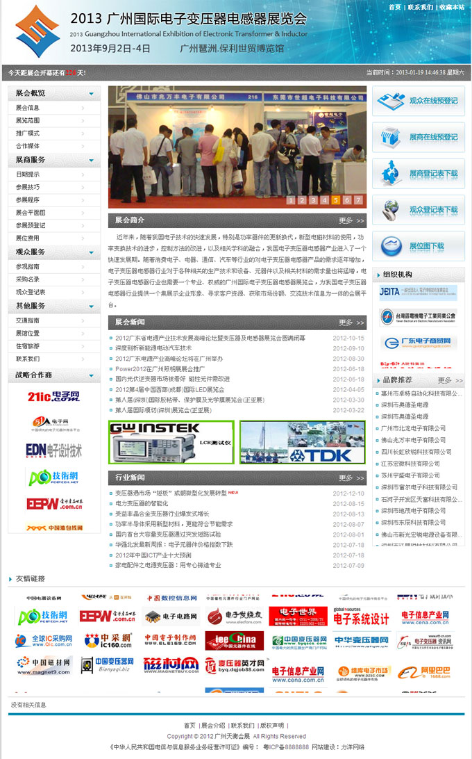 项目名称:广州天衡会展签定日期:2012年6月18日网址:http://www.eaei-expo.com近年来,随着我国电子技术的快速发展,特别是功率器件的更新换代,新型电磁材料的使用,功率变换技术的进步,控制方法的改进,以及相关学科的融