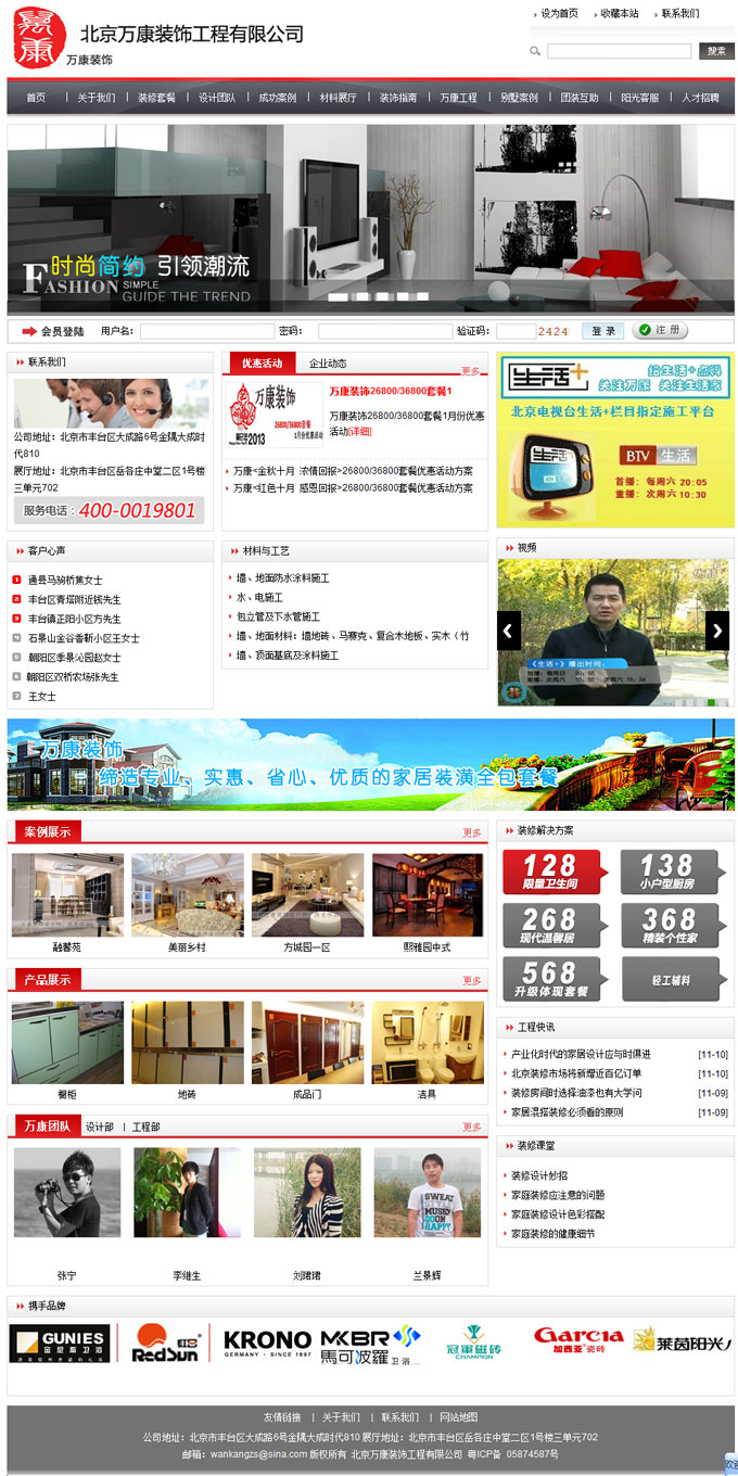 万康装饰自成立以来,本着对客户负责,让客户满意的态度,服务于无数家庭,是一家以家居产业为主线,立足在家居装饰设计,施工,材料供应,拥有资深施工队伍数百支,多年的装修施工经历,练就了一流的技术水平。长期与BTV生活频道"生活+"栏目合作,树立了公司健康良好的品牌发展形象。优质的环保材料与成熟的环保施工保证了每个工程的质量,是老百姓信得过的装修企业。公司数年来通过品质打造品牌,并经过不断的资源优化拓宽式市场,设计理念的创新,构建了最具凝聚力的装饰产业和品牌梯队。