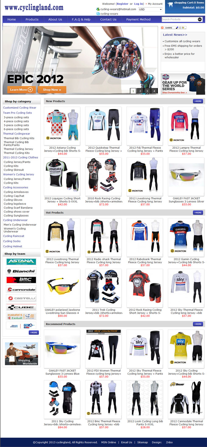项目名称:cyclingland网站建设签定日期:2012年10月15日网址:http://www.cyclingjersey-wholesale.com