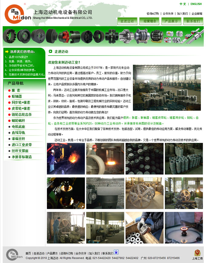 项目名称:广州迈动工业设备有限公司网站建设签定日期:2012年10月22日网址:http://www.midon.cn 上海迈动机电设备有限公司成立于2007年,是一家现代化专业动力传动元件的供应商。通过提高对客户、员工、股东的价值,致力