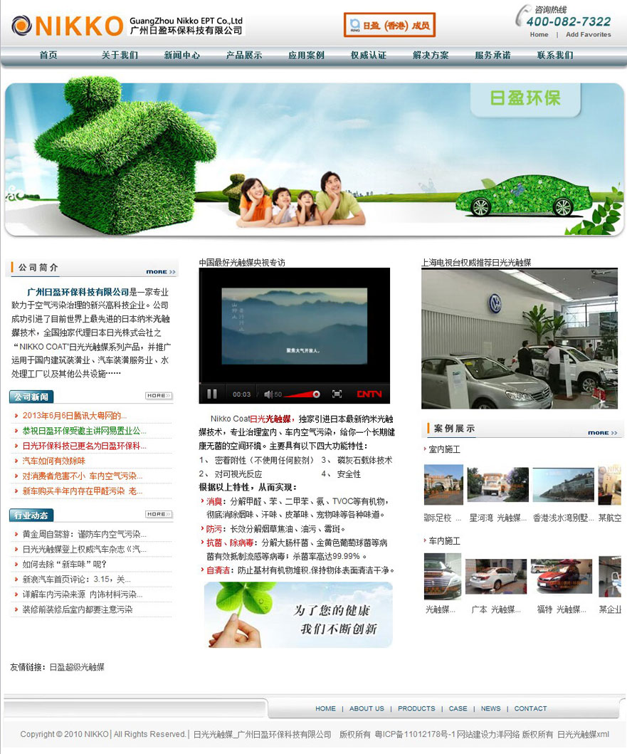 项目名称:广州日光环保网站建设签定日期:2013年4月24日网址:http://www.gznikkocoat.com广州日盈环保科技有限公司是一家专业致力于空气污染治理的新兴高科技企业。公司成功引进了目前世界上最先进的日本纳米光触媒技术,