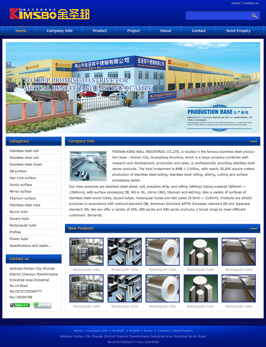 项目名称:Foshan KIMSBO Stainless Steel Co.,Ltd网站建设