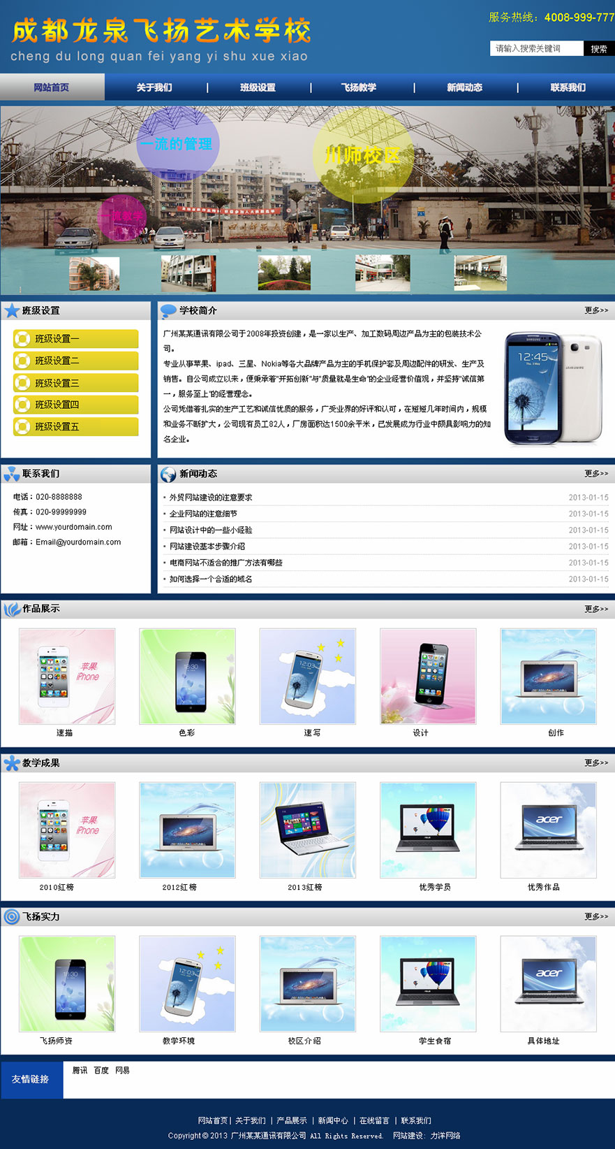 项目名称:成都龙泉飞扬艺术学校网站建设