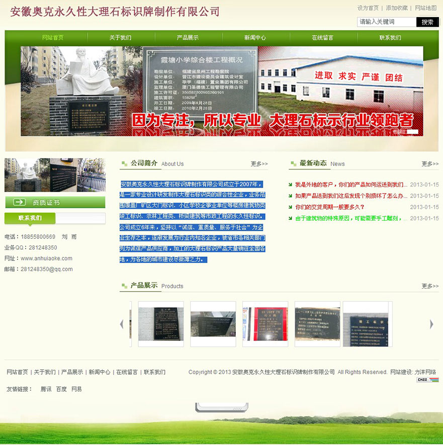 项目名称:安徽奥克永久性大理石标识牌制作有限公司网站建设