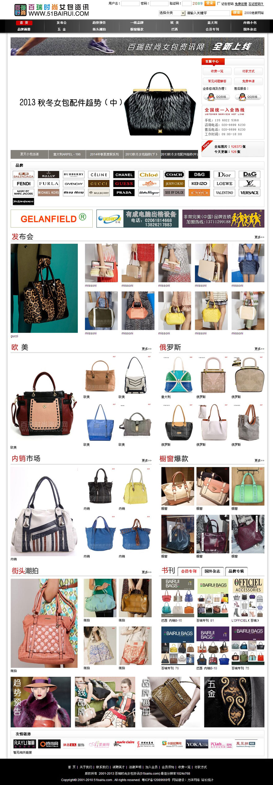 百瑞会员专刊创刊于2006年,每月一期,内容包括最新的欧美,俄罗斯,五金样式,深受广大皮包厂商和设计师的广泛好评,在2008年,为了让会员更快更全面的掌握潮流资讯,“百瑞时尚女包资讯网”隆重上线,在2011年,为了体现“用户至上”原则,让用户更快,更方便的找到所需资料,百瑞时尚资讯网经历了第一个全新改版,如今,一站在手,尽览世界最新手袋资讯,让您的企业赢在起跑线上。