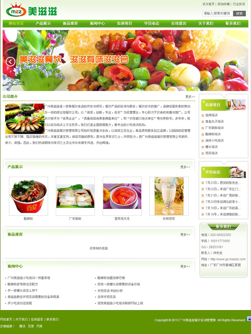 项目名称:广州美滋滋网站建设签定日期:2013年7月10日网址:http://www.gz-meizizi.com广州美滋滋是一家集餐饮食品的开发与研究,餐饮产品的咨询与服务,餐饮技术的推广,品牌店面形象的策划为一体的综合性餐饮公司。以&l