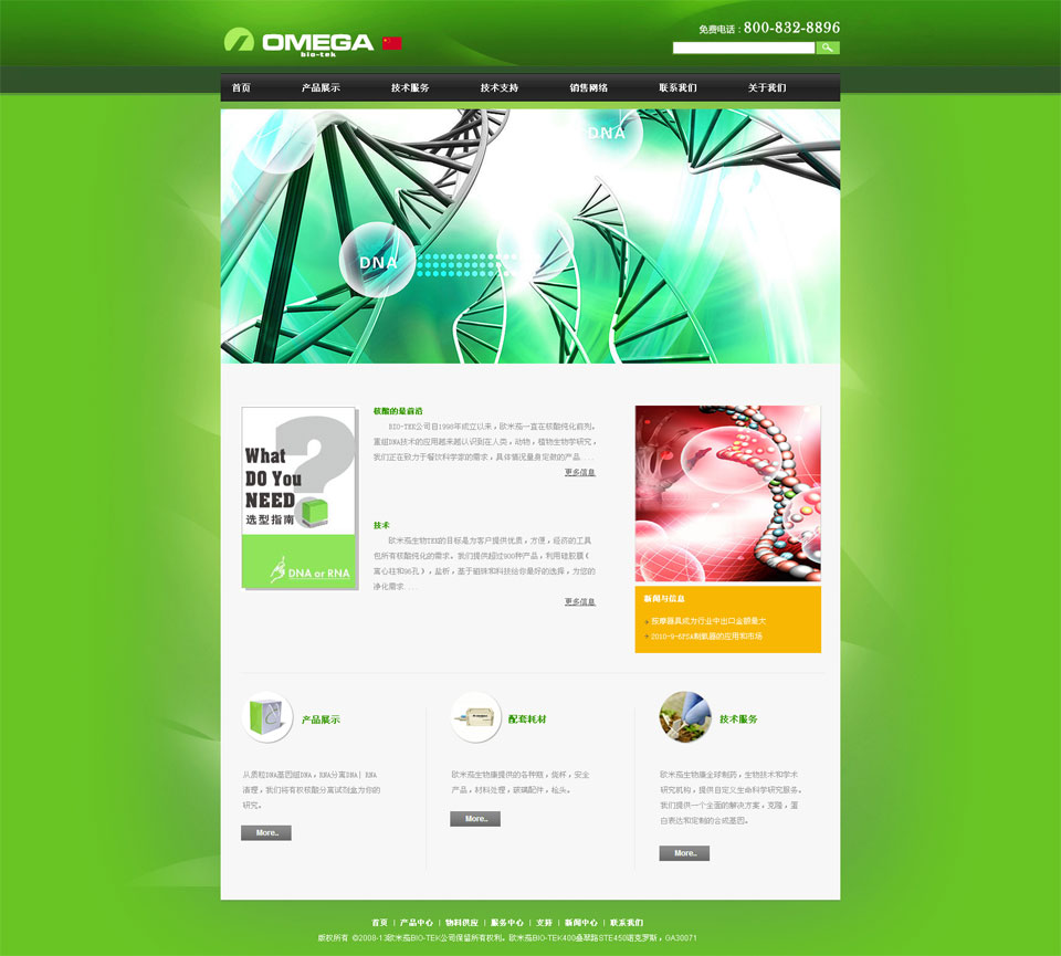 项目名称:广州飞扬生物工程有限公司网站制作签定日期:2013-8-2公司简介:OmegaBio-Tek公司自1998年成立以来,核酸纯化技术一直位于行业前列。DNA重组技术被广泛应用于人类、动物及植物生物学研究领域,Omega致力于科学家的
