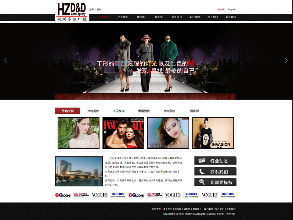 项目名称:杭州多德外籍模特经纪公司 签定时间:2013-10-10 项目网址:http://www.ddmodelagency.com/ 项目简介: 杭州多德文化艺术策划有限公司旗下多德模特经纪是一家专业外籍模特经纪公司,拥