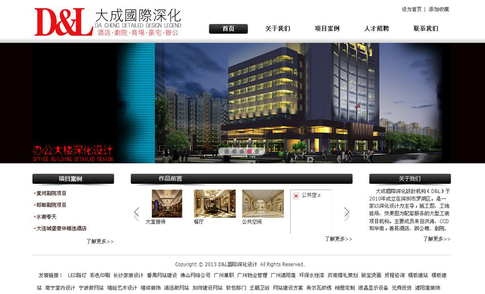 项目名称:大成国际深化设计机构 签定时间:2013-11-28 项目网址:http://www.lvshsj.com/ 项目简介: 大成國際深化設計机构(D&L)于2010年成立在深圳市罗湖区。是一家以深化设计为