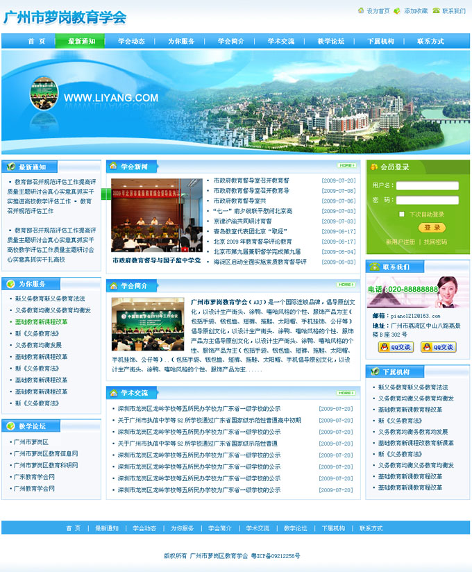 项目名称:广州市萝岗教育学会网站建设签定日期:2010年3月29日网站首页设计效果: