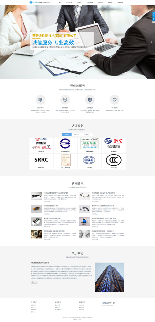 项目名称:贝斯通检测技术(深圳)有限公司网站开发 签订时间:2019-4-9 项目网址:www.beston-test.com 公司简介: 贝斯通检测技术(深圳)有限公司是一家专业从事产品测试与认证经验的专业检测认证与咨询服务的第三方