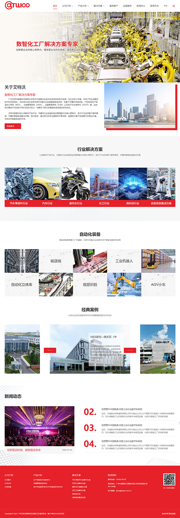 项目名称:广州艾特沃数智科技有限公司建站 项目网址:www.atwoo.com.cn 公司简介: 广州艾特沃数智科技有限司专注于数智化及自动化项目的研发与实施,在过去的十年里,形成了专业且稳定技术的项目团队。并且成功地为多家世界50
