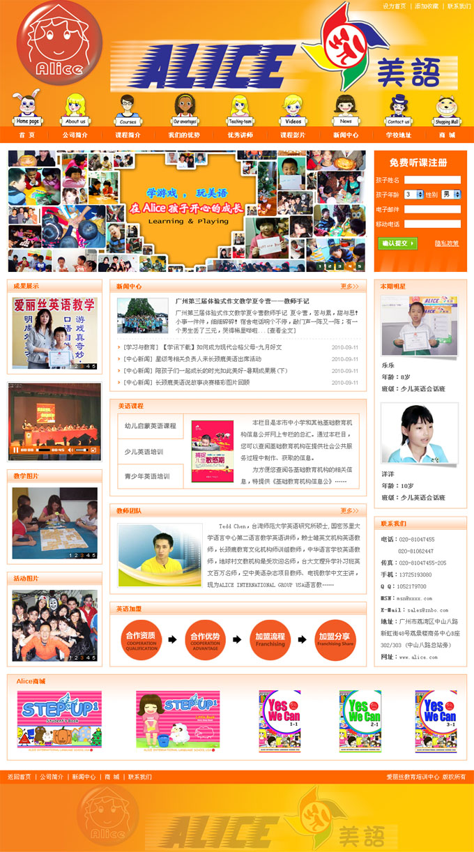 项目名称:爱丽丝教育培训中心网站建设签定日期:2010年9月8日网站首页设计稿: