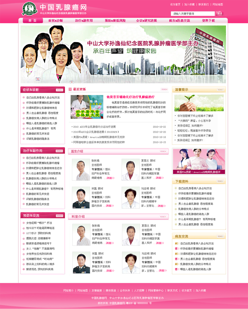 项目名称:中山大学孙逸仙纪念医院乳腺肿瘤科网站建设签定日期:2010年10月30日网站首页设计稿:(缩略图)