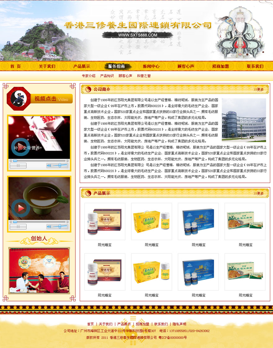 项目名称:香港三修養生國際連鎖有限公司网站建设签定日期:2011年9月27日网站首页效果图: