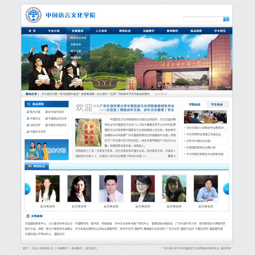项目名称:广东外语外贸大学中文学院汉语言专业网站建设