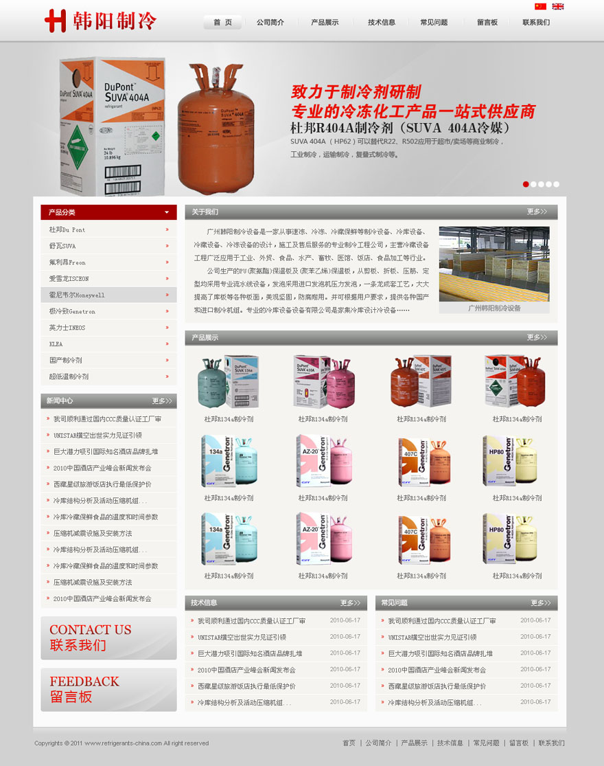 项目名称:广州韩阳制冷设备有限公司网站建设签定日期:2011年11月12日注册网址:http://www.refrigerants-china.com/公司简介:韩阳的前身是制冷中心海珠北的一个供货仓库,06年韩阳注册成立了自己的门市经营部