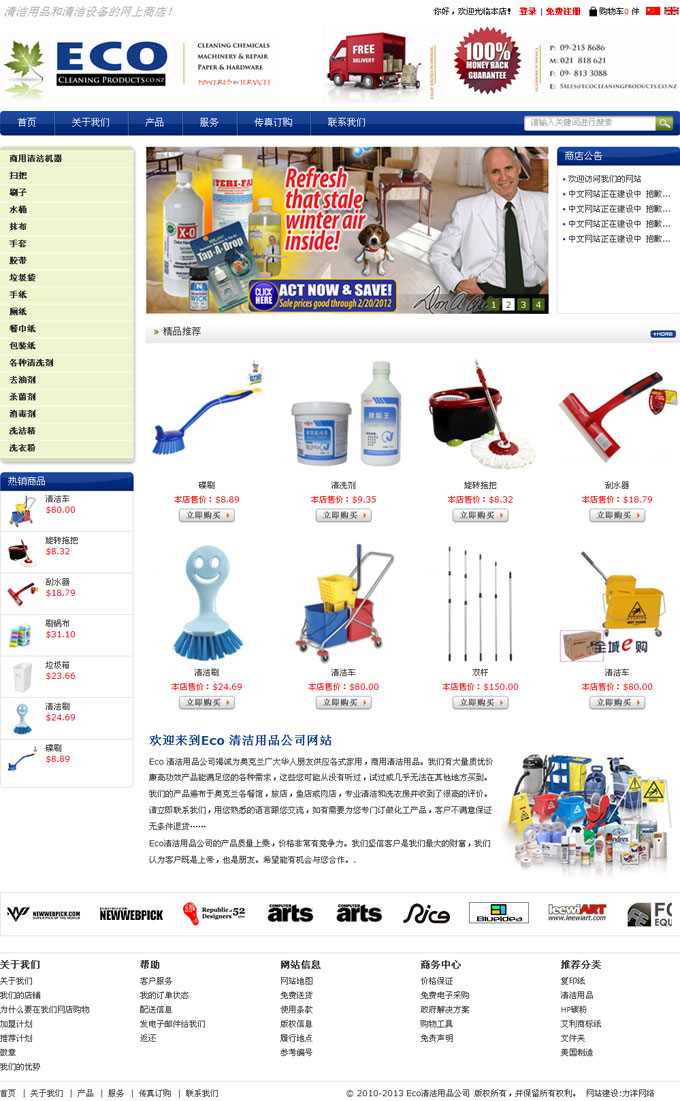 项目名称:Eco清洁用品公司网站建设签定日期:2012年1月19日网址:http://www.ecocleaningproducts.co.nz