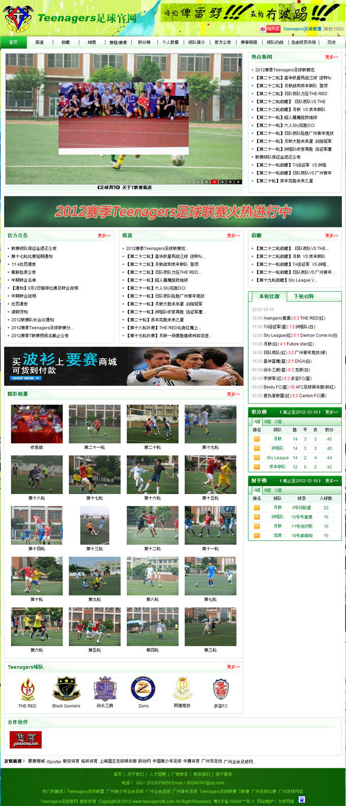 项目名称:Teenagers足球联盟网站建设签定日期:2012年1月30日网址:http://www.teenagersfb.comTeenagers足球联盟成立于2011年2月,以发展本地青少年足球,拓展青少年业余活动,增强青少年身体素质