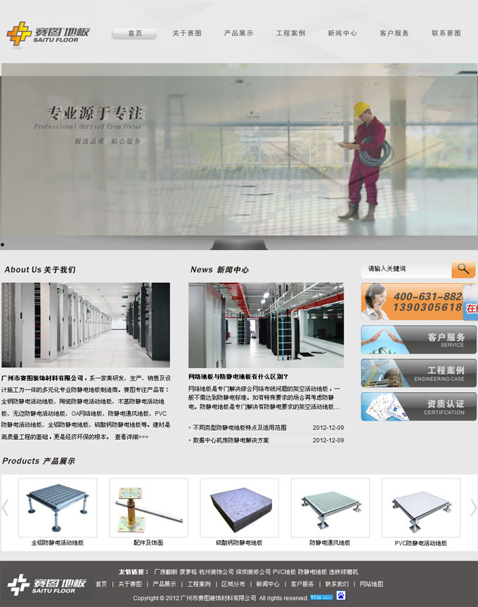 项目名称:广州市赛图装饰材料有限公司网站建设签定日期:2012年5月23日网址:http://www.gzsaitu.com 广州市赛图装饰材料有限公司,系一家集研发、生产、销售及设计施工为一体的多元化专业防静电地板制造商。赛图专注产品有